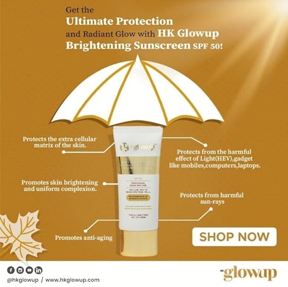 The HK Glowup Brightening Sunscreen Cream SPF 50 UVA, UVB IR Broad Spectrum P++++ is available on Amazon Beauty. Remember to check our Rewards rates to get the best price. Our Rewards rates are applicable regardless of the mode of payment, whether it is by credit/debit card, net banking or cash-on-delivery.