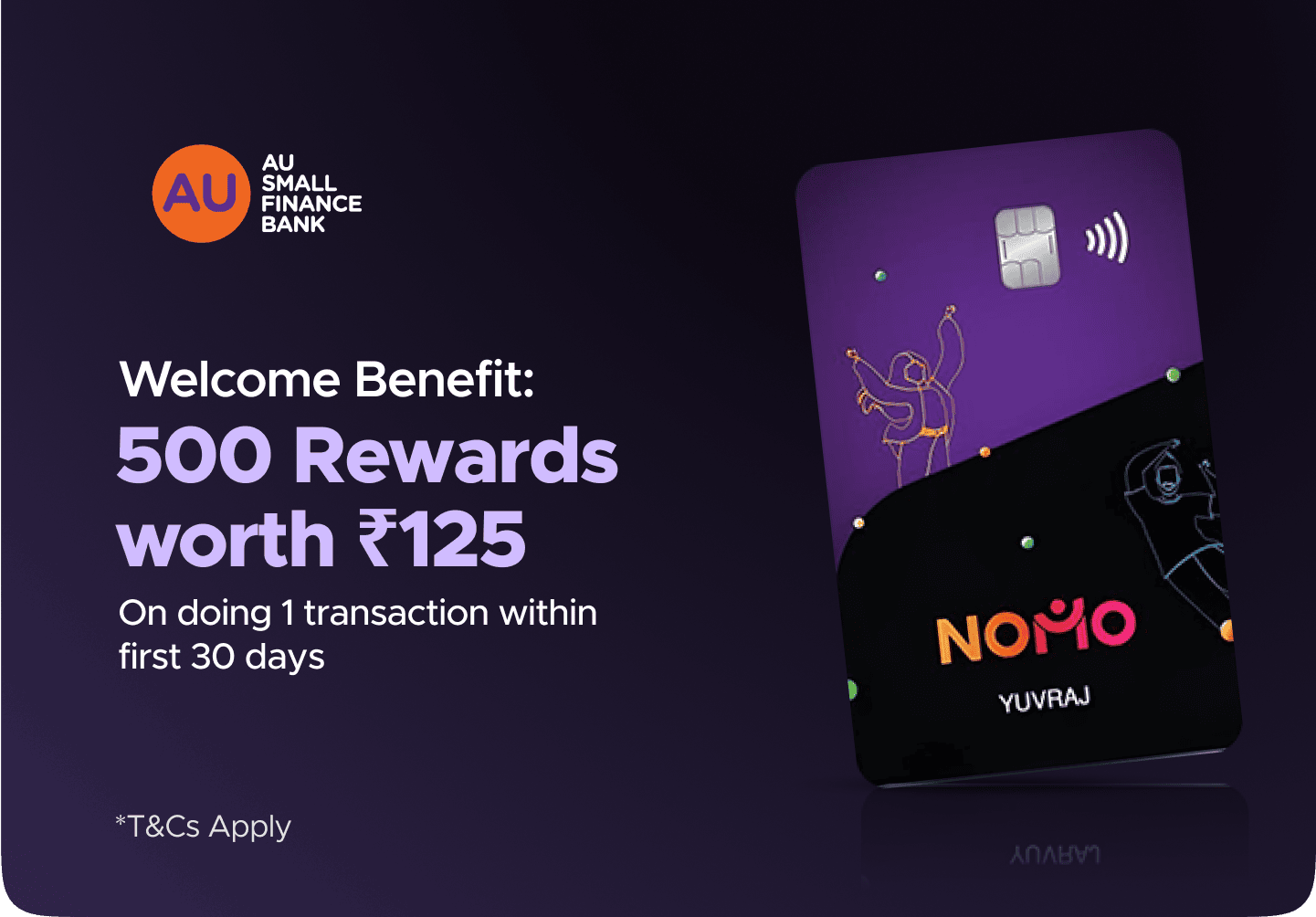 Orders placed on AU NOMO Credit Card app are eligible for Rewards