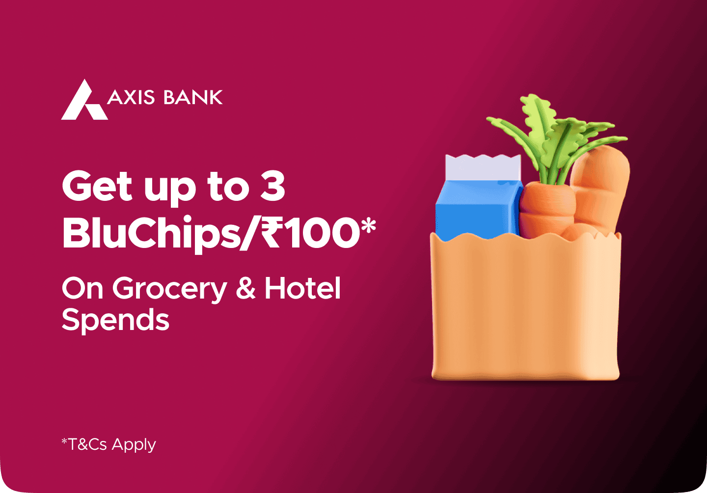 2Get upto 3 BluChips per ₹100 spent on Grocery & Hotel spends