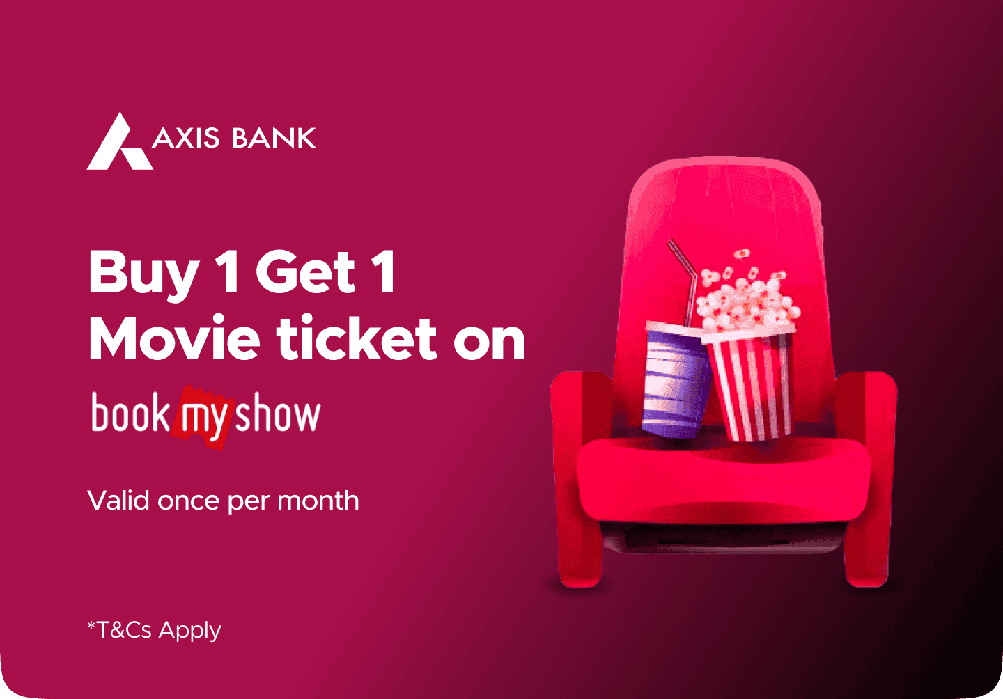 5BOGO on BookMyShow - 1 movie ticket per month with Premium Visa variant (Valid once per month)