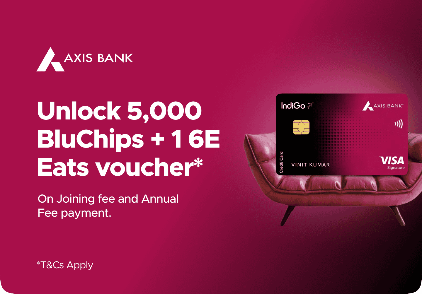 4Unlock a 5,000 IndiGo BluChips voucher + 1 6E Eats voucher with the Premium variant, and 1,200 IndiGo BluChips with the RuPay variant on Joining fee and Annual Fee payment