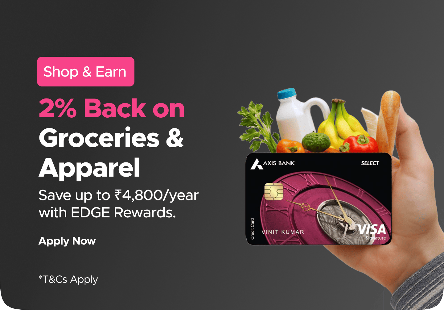 Orders placed on Axis Select Credit Card app are eligible for Rewards