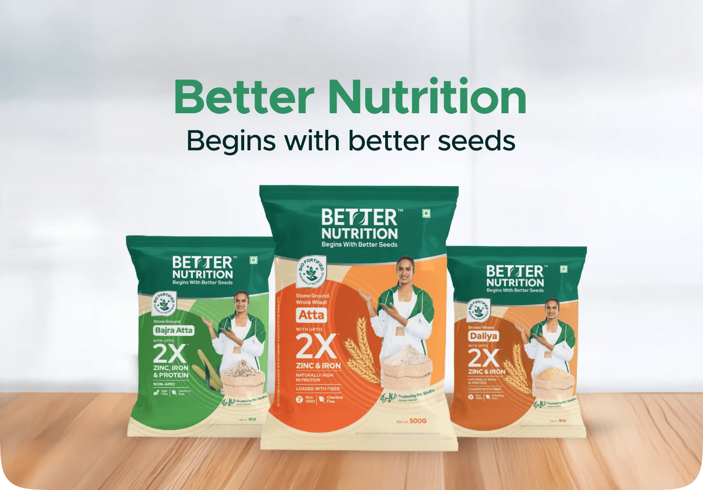 1Pioneering India's first biofortified seeds to deliver essential everyday nutrients directly through your regular dietary staples.