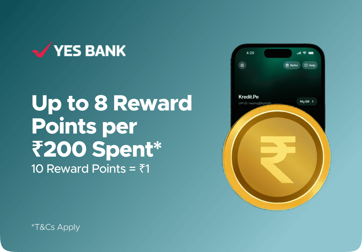 4Earn up to 8 YES Bank Reward Points for every ₹200 spent