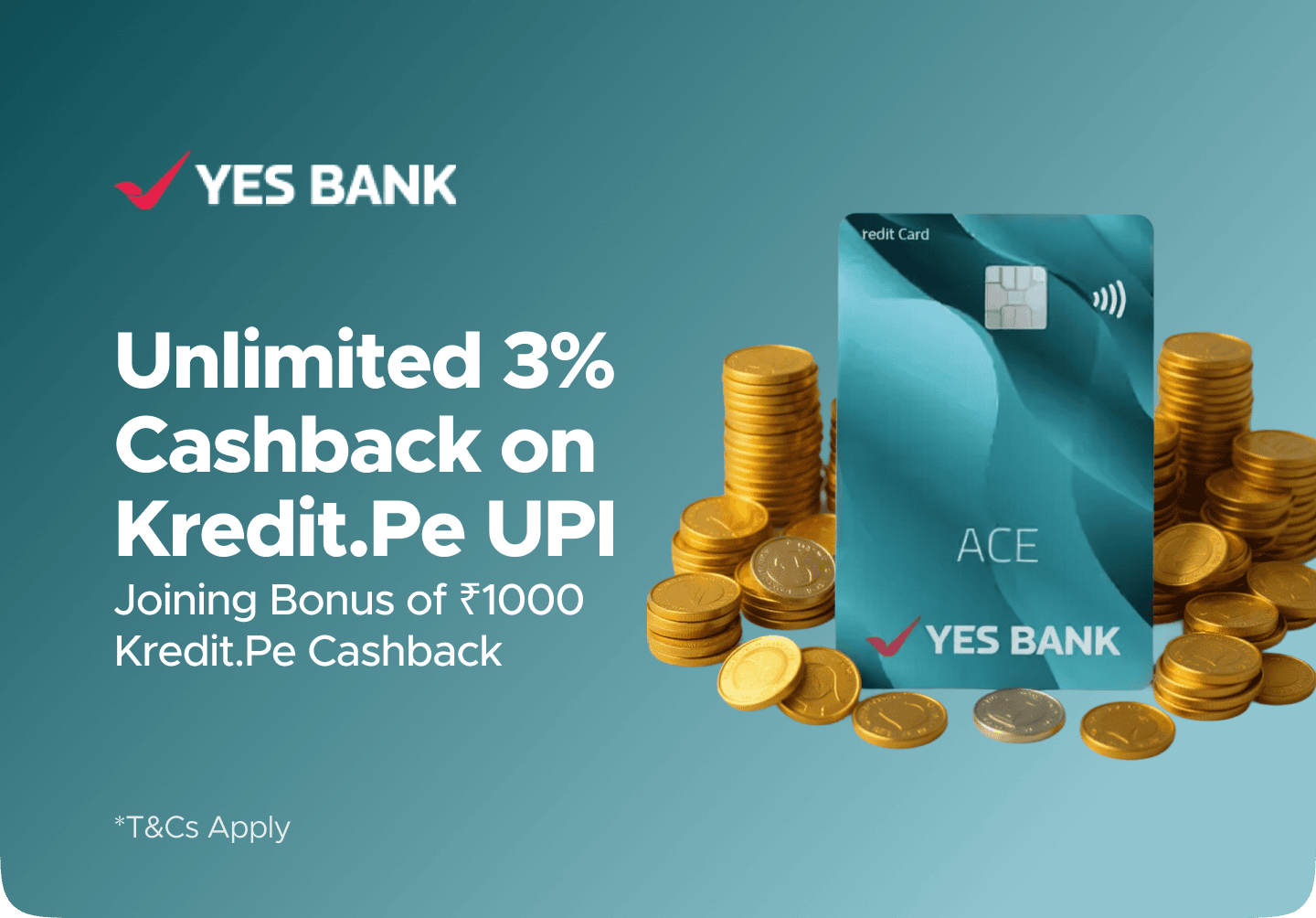- If any credit card other than the Kredit.Pe Yes Bank Ace LTF UPI Credit Card is approved, you will not be eligible for Rewards