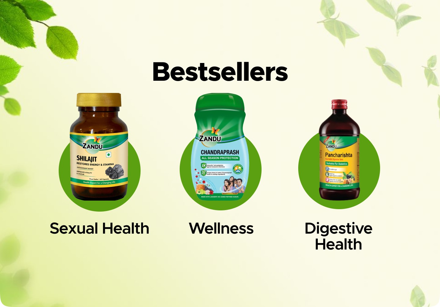 With a legacy of over 100 years in manufacturing medical and wellness products based on the science of Ayurveda, Zandu Care brings the best out of ancient Ayurvedic wisdom for everyday health issues like indigestion, immunity, sexual wellness, mental health, and bone & Joint wellness. Pure top-quality natural ingredients like Guduchi, Asvagandha, Haridra, Amalaki, and Karela with high medicinal value are sourced from India's pristine forests in making Zandu Care products.