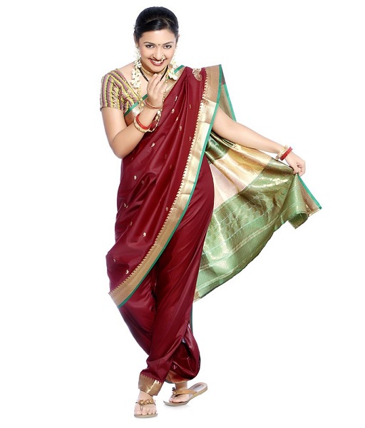 This traditional saree style from Karnataka is very simple to wear. It reflects tradition and culture and can be worn on special occasions.